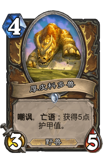 第二个爆发点是两费【钢鬃卫兵】+两费嘲讽,下一回合在【钢鬃卫兵】活下来的情况下【尖壳印记】buff场面加免费一个两费嘲讽。