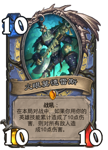 新版本法师主推了火冲体系。火眼莫德雷斯是一张体系内很强的终结卡,但我对他的怀疑是仅凭这张卡能不能终结比赛,但强度毫无疑问是不低的。鲁莽的学徒在体系内是很强的解场加做任务,必带卡。野火在体系内目前看是必带卡。