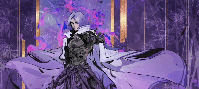 除此之外,角色的待机状态中,还会带有专属的紫焰幻境特效,在一个水墨风的圆圈中,可以藉由现世中看透到里武林,而看到与角色身份相符的一个小小幻境场景。这个设计,是传统佛教文化中一花一世界,一树一菩提的尝试。