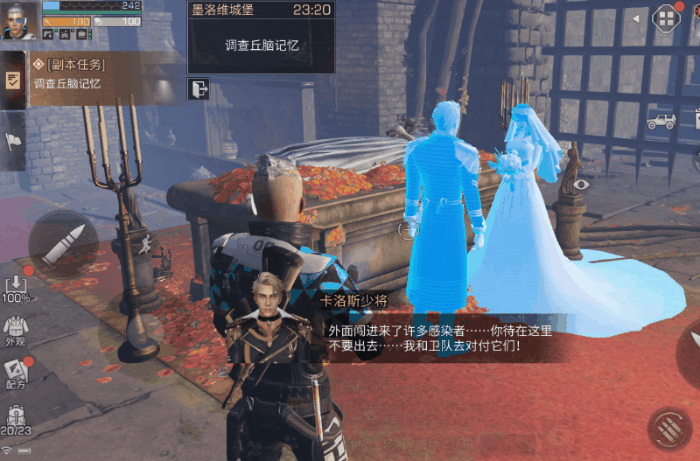 我们进入城堡后,发现了被感染者包围的乔伊,帮他击退感染者并简单包扎后,他向我们传递了最新的消息:安雅不见了。