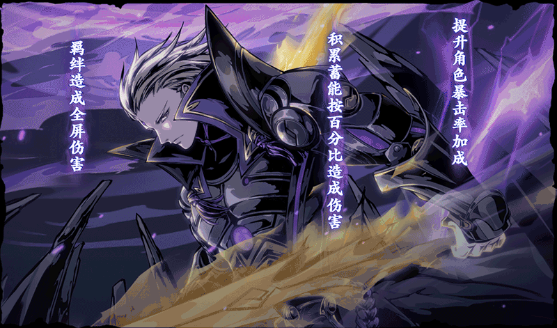 究极闪电脉冲(紫5):每一次自身被破甲时,对场上全部敌人造成上一次破甲到本次之间所受到全部伤害的800%的伤害,以及自身全部护甲值的1000%的伤害,并使得自身攻击力+20%,持续3秒。