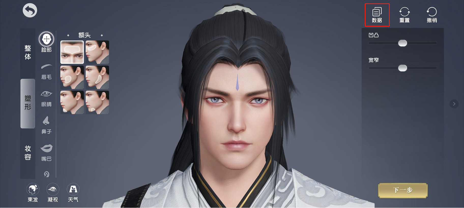 1、打开游戏,捏出好看的样子后,点击右上角的数据;