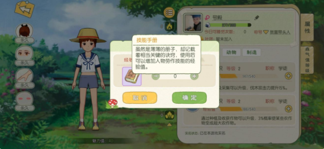 1,每个技能经验值达到一定数额就可以提升技能等级,同时增加速度,售卖,产出,以及减少时间。