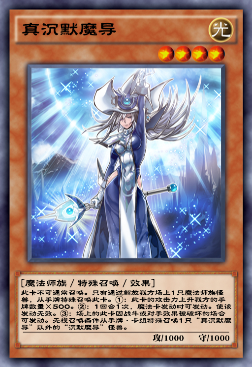 每有1张手牌就上升500攻击力,还可以将魔法卡的发动无效!被破坏的场合还可以从手牌卡组特殊召唤攻击力高达3500的「沉默魔导 等级8」,战力不减。