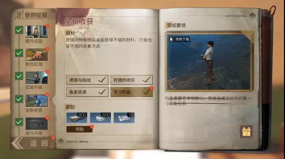 在参与钓鱼大赛前,联盟需要考验你是否真的掌握了钓鱼这项技能。完成生存手册第三章第四节来啊,钓鱼啊!即可获得参与钓鱼大赛的资格,末日垂钓王非你莫属!
