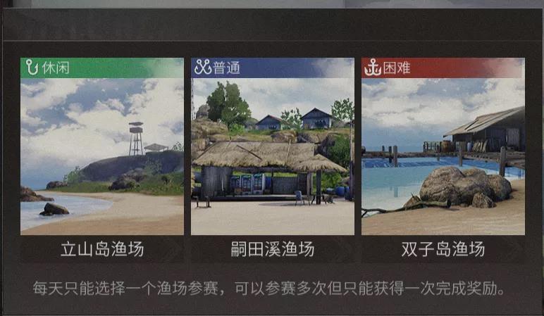 幸存者可以根据自身情况选择适合的渔场挑战,每天只能选择一个渔场参赛哦。