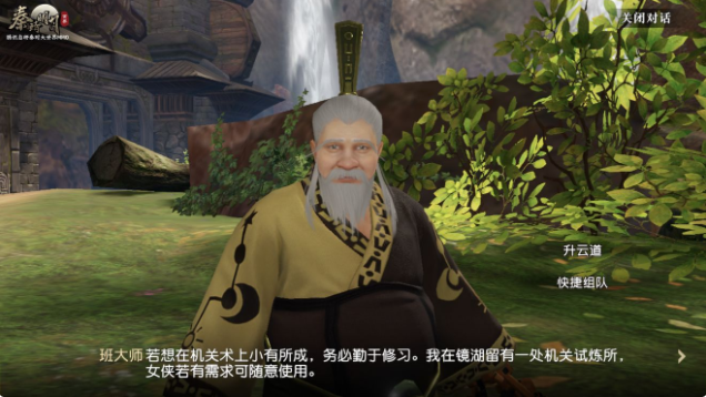 少侠需先前往机关城找到班大师并与他对话,对话开启后则会弹出提示,进行活动选择,如果此时少侠已经组好队伍,则可点击升云道直接开启活动,若没有组队,则可点击快捷组队进行队友匹配,队伍人数满足即可进入副本。