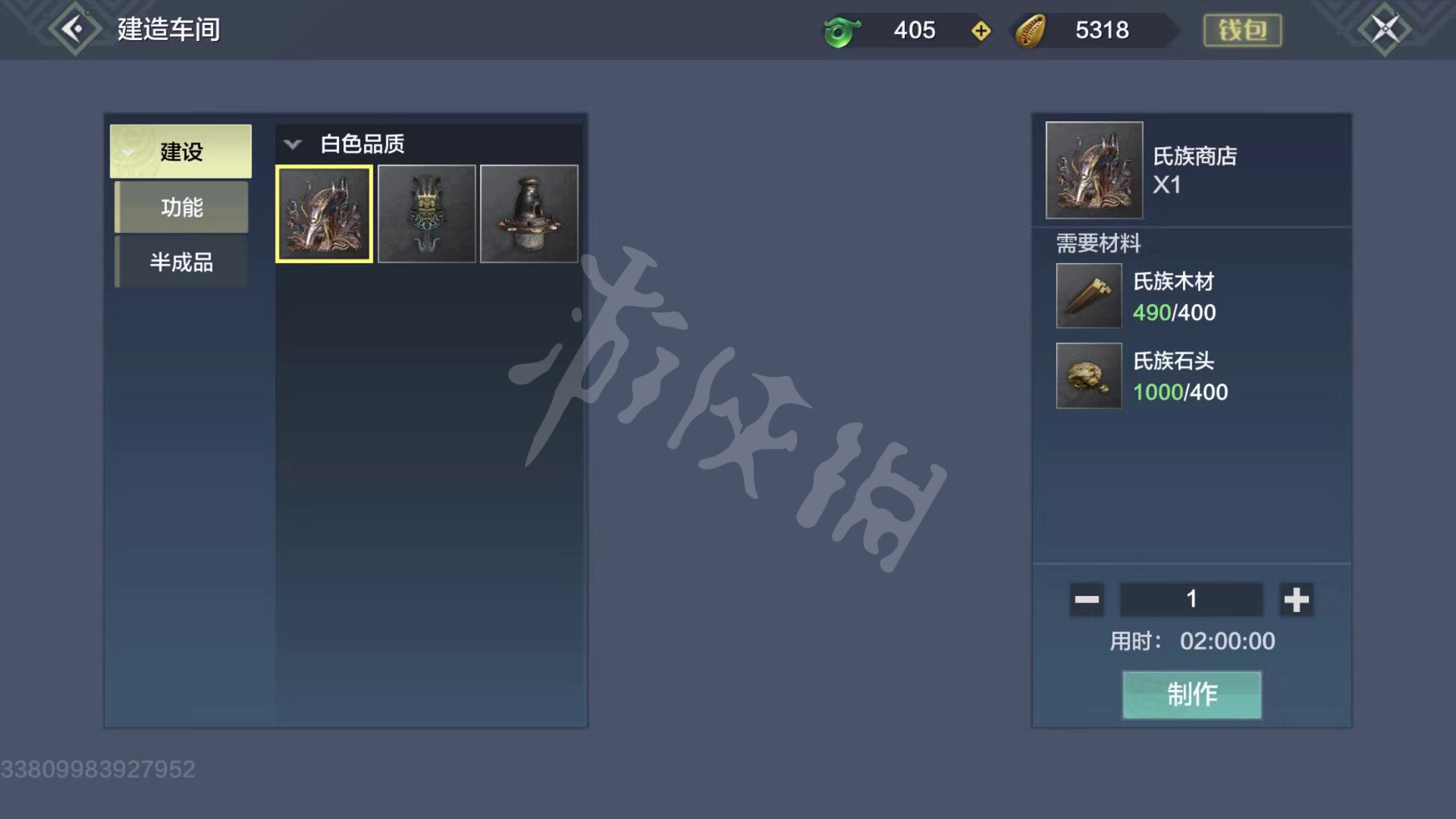 氏族商店消耗400氏族木材+400氏族石头用时两个小时才能制造出来。