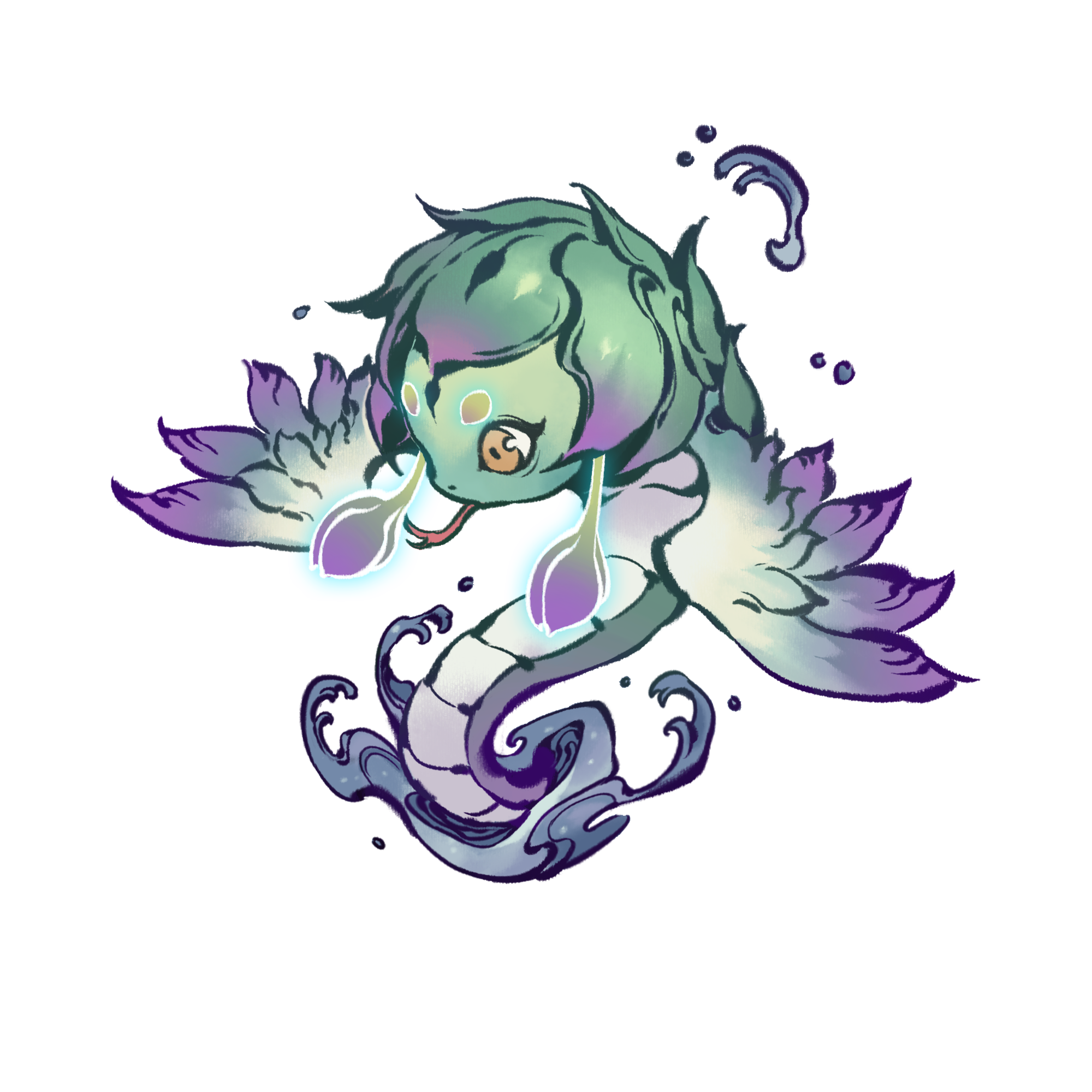 羽玄蛇的原型也是山海经中记录的神兽,它们生长在柜山至漆吴之山间,鸟身蛇尾,头上两朵含苞待放的奇花与身上的羽翼皆为青紫色。