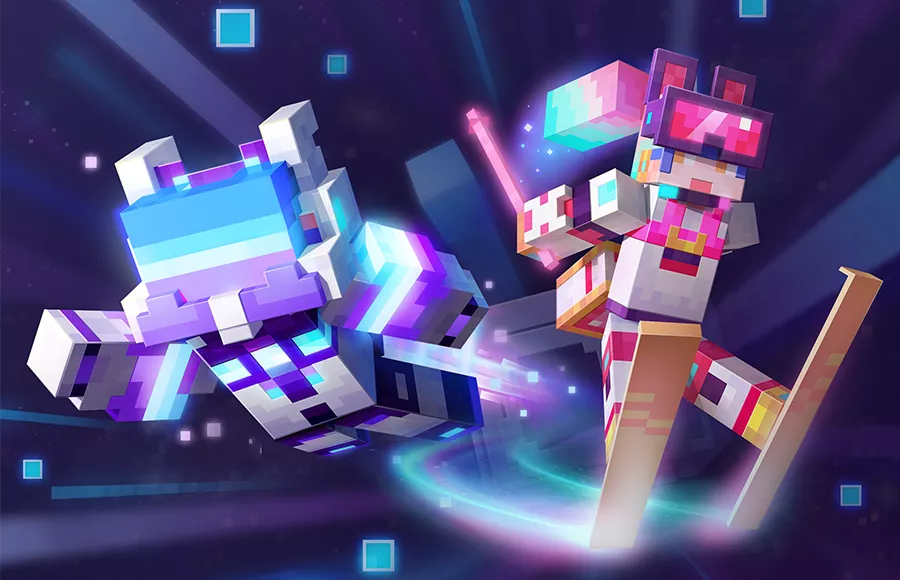 头发拥有绚丽渐变色彩的虹光,面罩拥有绚丽渐变色彩的夜影,滑雪星球的来客即将登场,哪款是你的pick?虹光与夜影同款精美皮肤限时登陆方块世界,参与太空奇旅活动即可获得,穿戴新款皮肤,还能获得炫酷彩光特效与特殊行走动作哦。