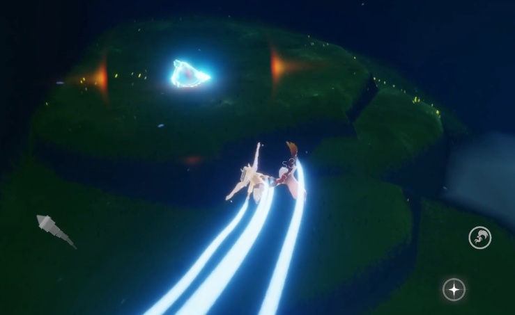 2、开始传火护送先祖,期间先祖还会悬浮在空中,大家要拉着光圈一起飞上去。