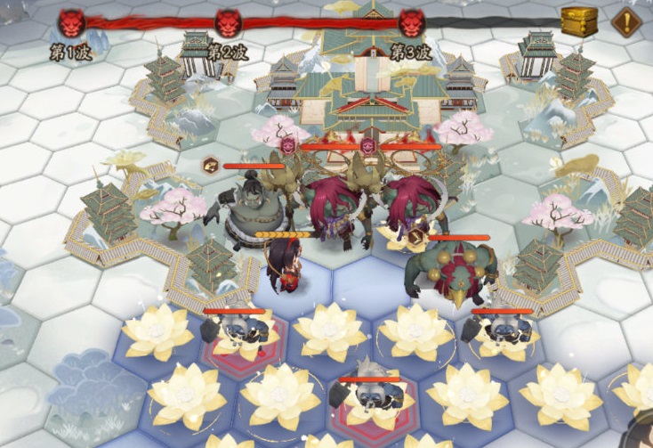 根据分布图,利用阿修罗吸引仇恨,帝释天提前放置莲花,有效避免帝释天受伤死亡(浪费勾玉复活),减低活动难度+提高效率!0练度也可通关。