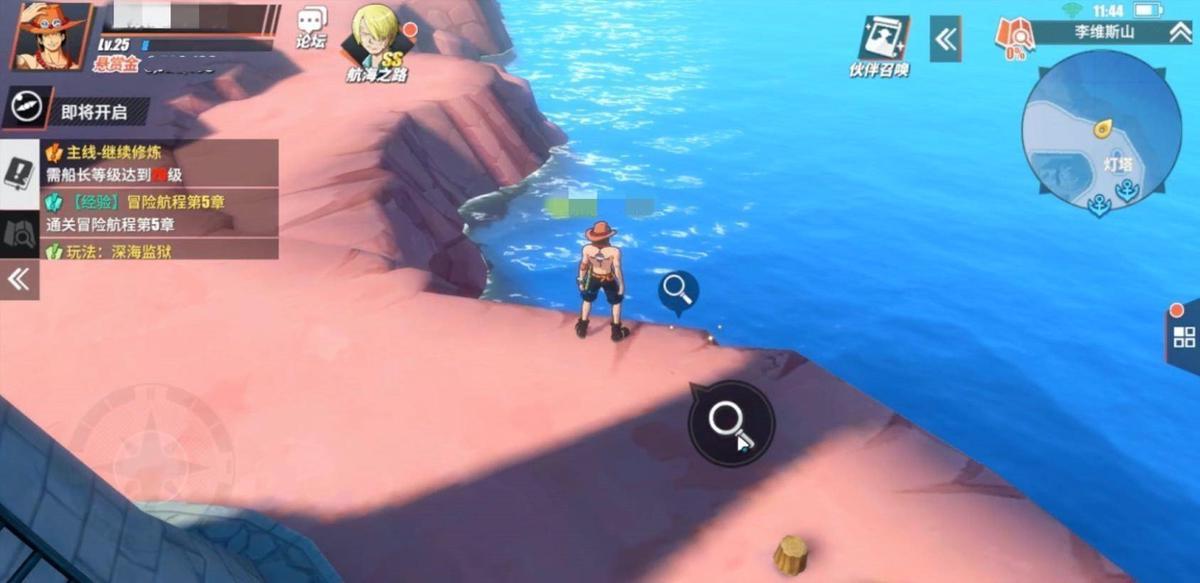 同站在“李维斯山”北侧灯塔处的“克罗卡斯”进行对话,会弹出“询问拉布过往”的对话选项,这时玩家点击该选项后会跳转至“剧情回忆”玩法,对话框右上角会有一个人物相关提示,而另外一个则需要玩家根据原著以及游戏中剧情相关人物来选择补充,此处选择“路飞”与“娜美”两名角色后,可进入该回忆。