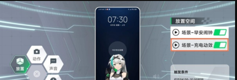4、点击放置,在放置空间将充电动态的开关开启即可。