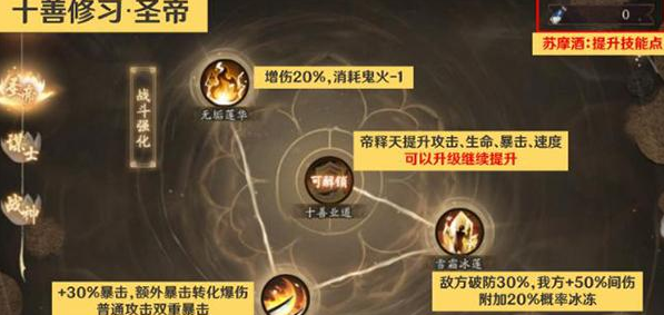 然后优先点阿修罗属性,最后点帝释天,点完剩下的强化十业善道。