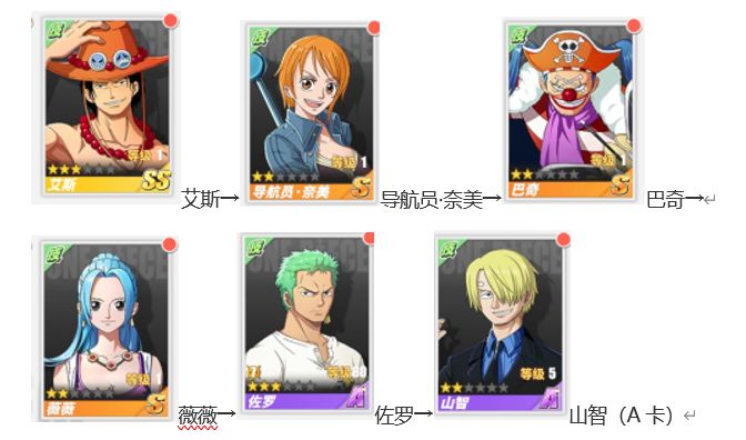 上阵伙伴搭配推荐:青雉→黑足·山智→艾尼路→狙击王·撒谎布→奈美→撒谎布→托尼托尼·乔巴→福克斯→强高(伙伴效果:获得20%同类型伙伴的属性增益)