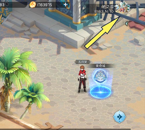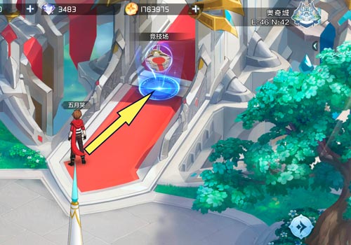 3、跑到奥奇城右上角,可以看到竞技场传送点。