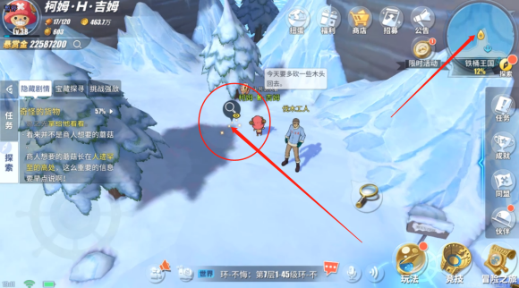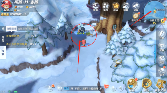 在找到冬岛后点击就会被传送到那里,在到达东岛之后,需要玩家点击右上角小地图寻找一个三岔路口。