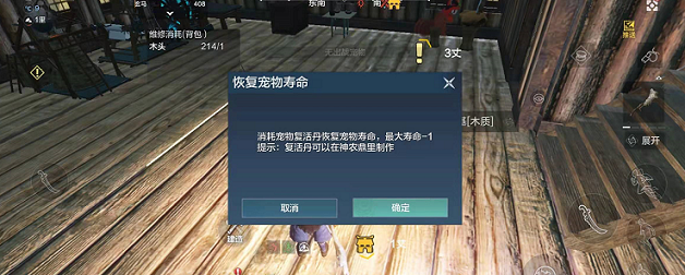 2、当寿命为零时唿唤宠物会出现消耗“宠物复活丹”恢复宠物寿命的提示。(如果没有复活丹可以去神农鼎中制作也可以在成长商店中购买)