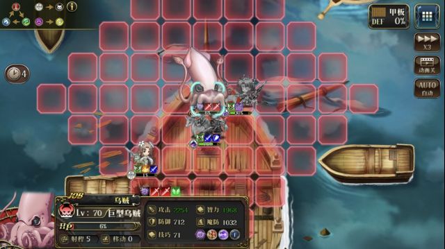 这里因为要等boss的AOE,所以我等了2回合,让我方章鱼和艾尔文一次吃AOE,最后打boss上岸