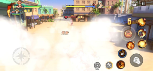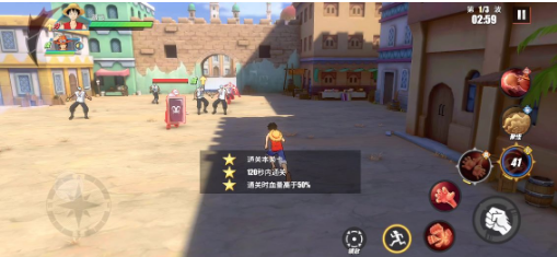 主要集中输出炮弹大兵!路飞在输出时,【橡皮·抓】可以留着,或者也可以第一招就使用出来。若是玩家准备留着,那么可以利用【橡皮·抓】来打断炮弹大兵的攻击。