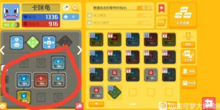 另一方面就是槽位的红蓝比,也就是攻击槽与生命槽的比,C位宝可梦要求的攻击槽要多,7:2,6:3是好的比例槽,T位宝可梦就同比例的蓝槽,攻守槽的优势就在这里了,因为有的宝可梦是可C可T的,例如腕力,5:4可以用,再之下的的比例就不建议过多投入,这里攻守比例的8:1与9:0是有点不一样,从推图来考虑,攻击是不太建议这样的比例,PK的爆杀流可以试试,因为该游戏特色,后排也常吃到伤害,并且国服特色不讲道理组合拳,C位一点都不肉就容易一碰就碎,肉可以考虑这样的极限流,就是会对C位压力较大,因为前排再肉,C为也没法走纯输出