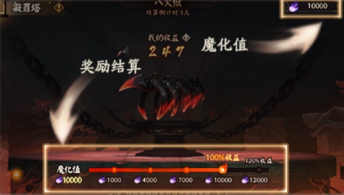 参与深渊中的玩法将获得魔化值;结算时将根据魔化值获得对应比例奖励。