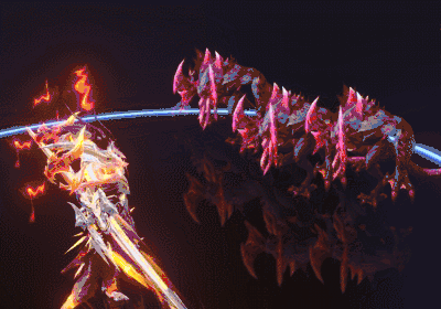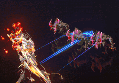 泰坦族生来喜欢炙热的生态环境,这个生活习性也融入到技能的呈现上,驱进技能手举沉重的长枪向前方猛烈冲击,并在过程中释放龙炎灼烧敌人。