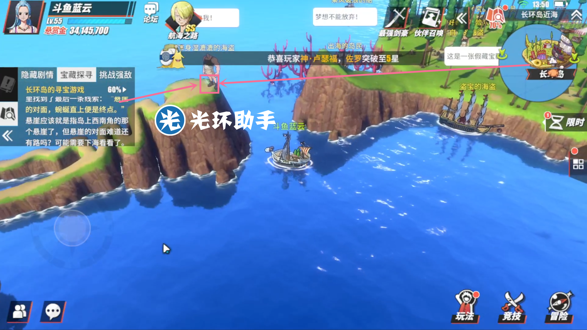 《航海王热血航线》长环岛的寻宝游戏完成攻略