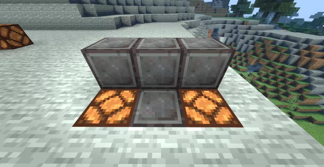 一开始我们先挖出三格空间,在里面填充红石灯和普通方块,然后在前端摆放三个普通方块。