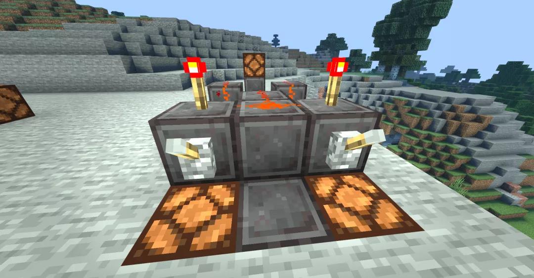 因为如果一个可充能方块被认为是作为输出信号的道具指向时,就可以激活其他装置。所以我们的活塞型是通过改变方块的位置来控制开关。