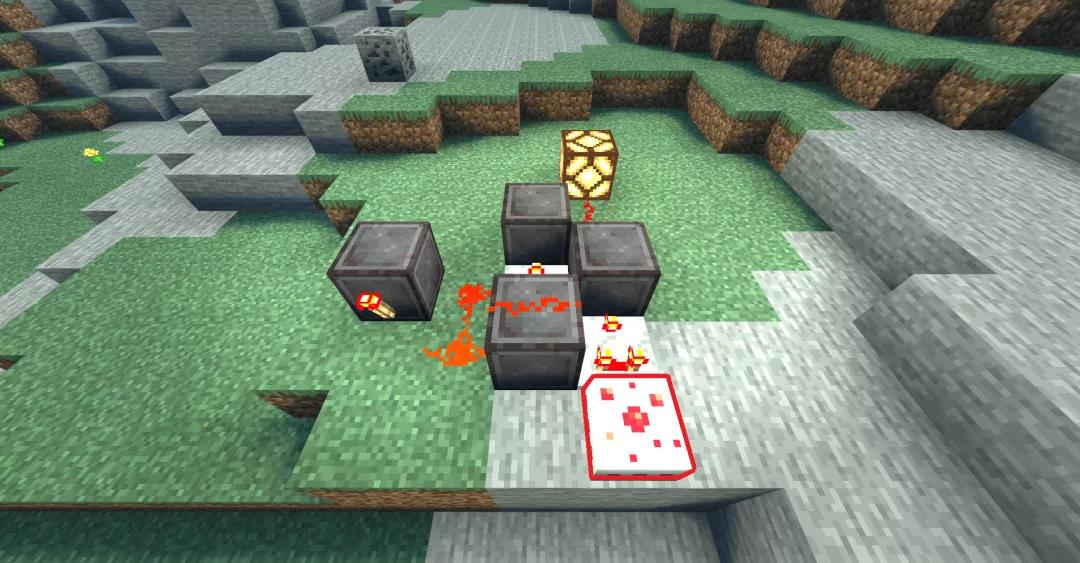 从右边的方块旁边引出信号,并放置一个红石灯。