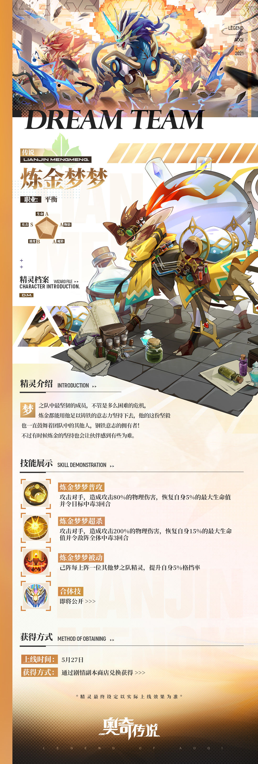炼金梦梦作为奥奇传说手游中梦之队的一员,将会在5月27日正式登陆游戏,那么玩家具体应该怎么获得呢?关于这个小编已经帮大家准备好了相关内容,希望可以帮助到大家,快来和小编一起来看看吧。