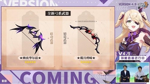 除了联动武器「幽夜华尔兹」外,还可以通过锻造系统获取另一把弓「戴月鸦啼」。