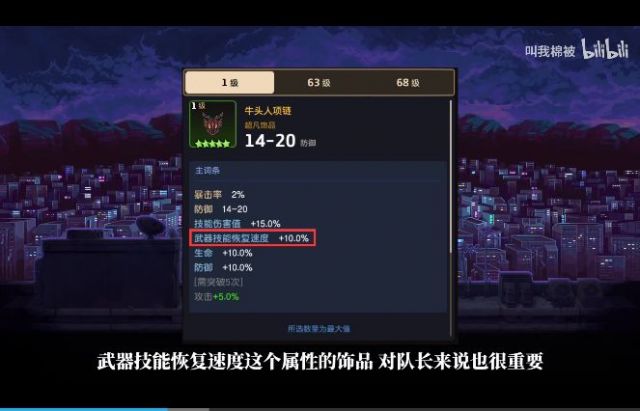 武器技能能恢复速度这个属性的饰品,对队长来说也很重要。同练度情况下,可以让自己比对方先打出组合技能,很多时候可以秒杀掉对面,这类饰品在后面的多人竞技赛里也比较好用。