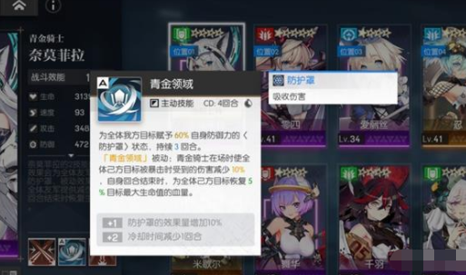 前排耐莫飞亚,全体防御加回血,亲测基本推图最佳了