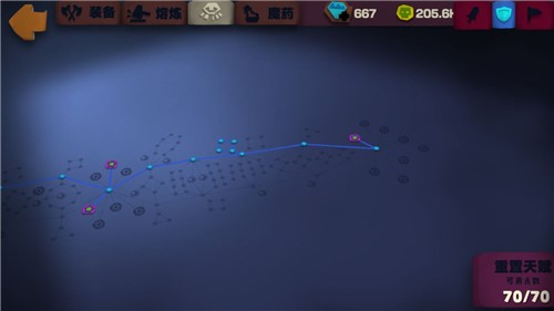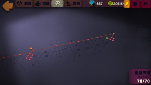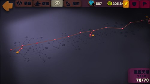 开荒先点防御,因为前期悬浮刃的伤害够,且击中可以回血,点防御可以避免被怪秒杀。防御高起来后,怪打我们也是刮痧,还能用高频率吸血慢慢回上来,但它们无法吸血,此消彼长怎么都能过。