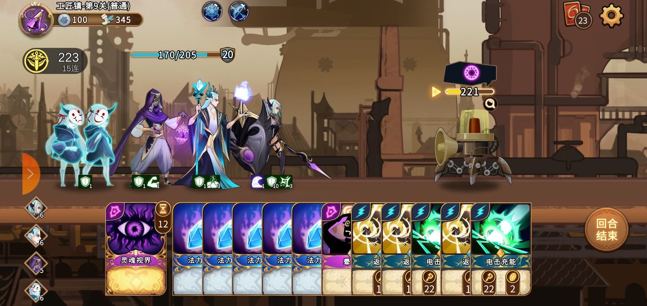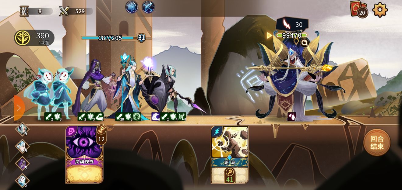 这个阵容一般发力期在第二回合,尽量刷出瓦索大招,然后可以直接起飞,前期随便打,打到后面关卡遇上人多可能一回合秒不掉,所以尽量手上有导电杖的时候再用。