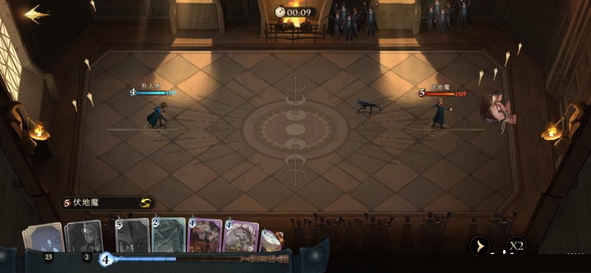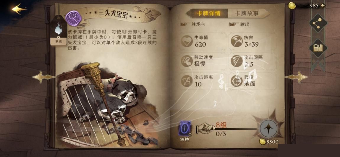 在战斗的中后期,由于使用了许多即时类卡牌,可以召唤出三头犬宝宝,配合第三个伙伴洛蒂快速回复魔力值,加快攻击的节奏,最后斩杀对方。
