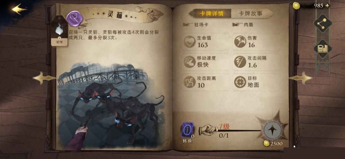 灵猫:移动速度极快,被攻击四次可以产生分裂成两只,最多分裂3次。费用低开局的时候配合蜷翼魔以及伙伴格洛普,骚扰对方。给对方形成压力,逼迫对方使用大量法术解场。