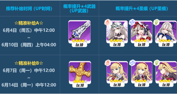 2)每十回精准补给内必出一件★4武器或★4圣痕。
