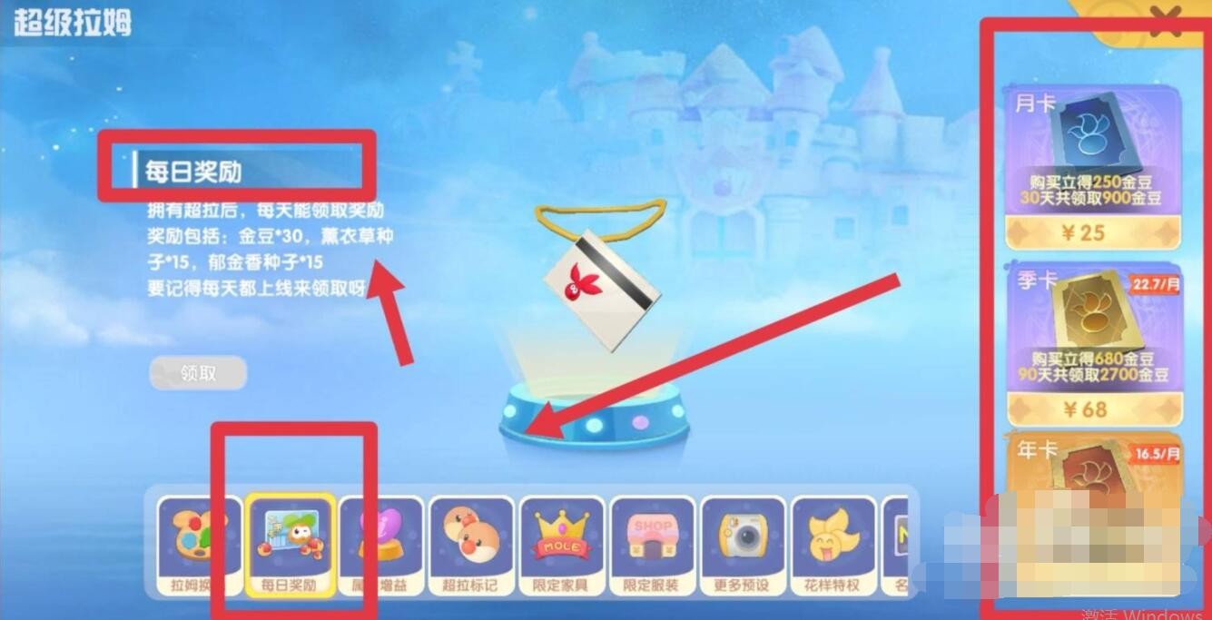点击购买月卡、季卡、年卡后,对应的每日奖励即为超拉工资。