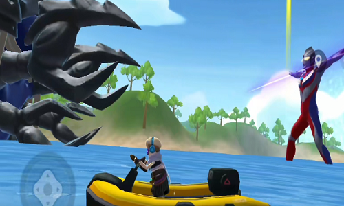 2.当圈开始缩的时候我们需要寻找到地图的中心位置(中心位置便于前往地图的各个地方),等待刷图的时机,当正前方出现奥特曼的提示时我们需要立即前往就是地图上出现上面的图标标识的位置,不要犹豫开着汽艇马上前往