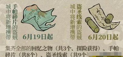 使用时要付给锦瑟,主要用途是解锁桃林居所。活动中一共可以获得8条手帕,6月13日起,从城内携带手帕的盗贼处获取6块,6月19号后续获得另外的手帕碎片。但是目前手帕碎片还不能使用,等到江南大盗活动的下篇6月19日开启后就可以用了。