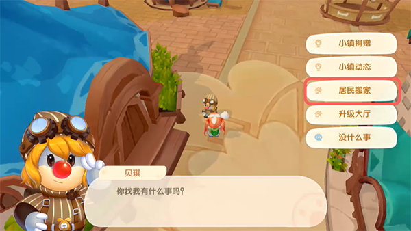 2、进入小镇之后,找到【贝琪】和其对话,选择【居民搬家】;