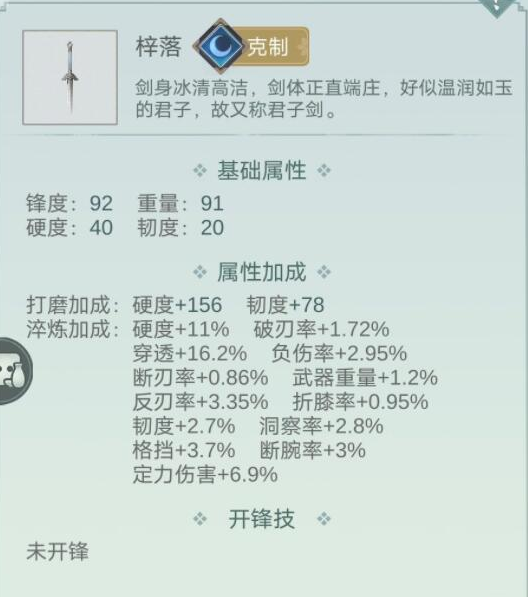 ·--武器评价--目前适用,轻武打先手,先发制人,克制使用无痕的少侠,伤害加成,速战速决,宜秒不宜拖。