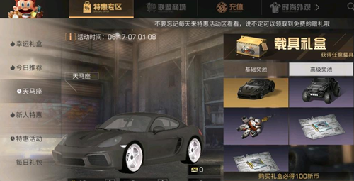 天马座:6月17日至7月1日8点,使用联盟支票兑换新币可额外获赠载具礼盒,有机会获得天马座、猎户座、铁拳金刚礼盒等特别奖励。