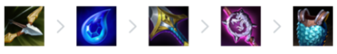 装备方面,由于这套武器,很肉,不会被秒,所以放弃传统的黑水银,采用暴力出装。饮血、蓝BUFF必备,第三件,可以看情况选择火炮、飓风或破甲弓,剩下的装备,优先合黑鸟盾增加全体肉度,还有多余的就丢给佛耶戈。