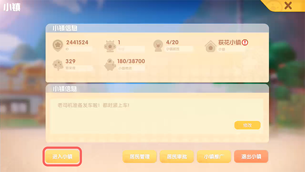 2.选择【进入小镇】进入自己加入的小镇;