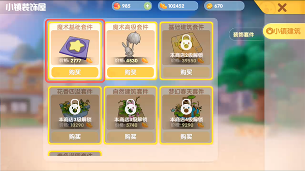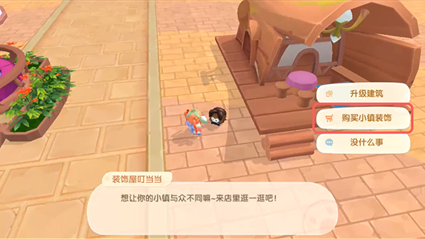 3、在小镇找到【装饰店叮当当】对话,选择【购买小镇装饰】;